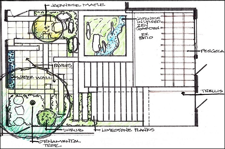 Downsizing from a much larger home in Elmhurst, the clients hired CG|LS to design an outdoor extension of their home for enjoying their morning coffee and entertaining friends. Three concepts were developed using a rich palate of warm paving materials, multiple levels for planting and use, a trellis to shade the walkout lower level, varied plant textures and colors, as well as a soothing water feature. The clients chose elements from each design that they liked and CG|LS wove them together creating a final design that met the clients’ goals of beauty, sustainability and use.